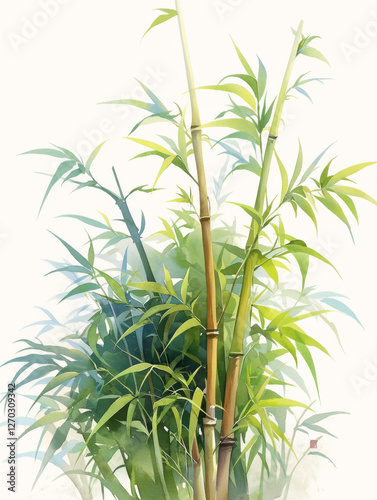 © Anciens, Obraz premium Bamboo watercolor hand-painted decorative elements
