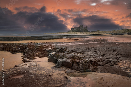 Obraz premium Bamburgh Castle dramatic sunset