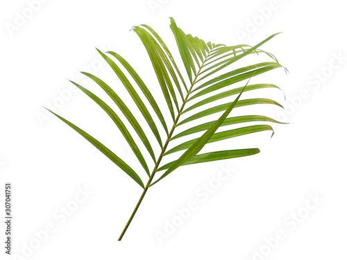 © PurMoon, Fototapeta premium Bambusowe liście palmowe lub liść palmowy na białym tle. Zielone liście lub zielony liść na białym tle.