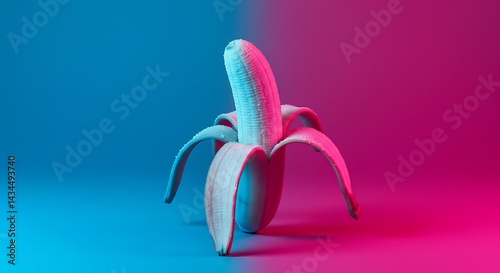 © Danny, Naklejka premium Banana in Pink and Blue Lighting Still Life