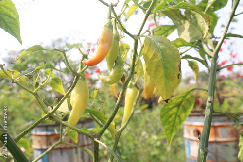 © CMYK MAKER, Fototapeta premium Banana pepper on tree in farm