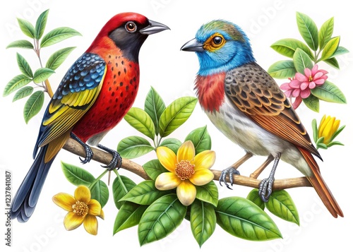 © Wanlop, Fototapeta premium Bananaquit Bird (Coereba flaveola) Perched on Branch, Vibrant Yellow, Rule of Thirds Composition