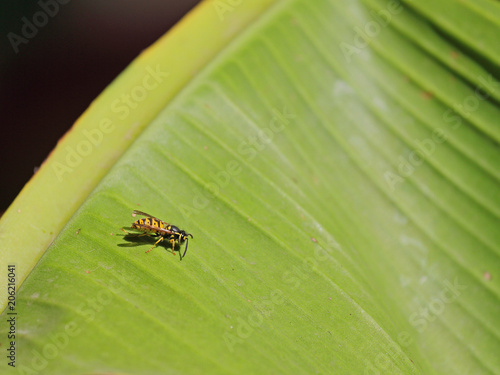 © Asray Laleike, Fototapeta premium Bananenblatt mit Wespe
