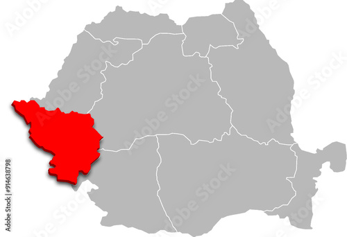 © WALDIR, Fototapeta premium banat map ADMINISTRATIVE DIVISIONS of ROMANIA 3d isometric map