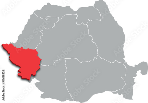 Naklejka premium banat map ADMINISTRATIVE DIVISIONS of ROMANIA 3d isometric map