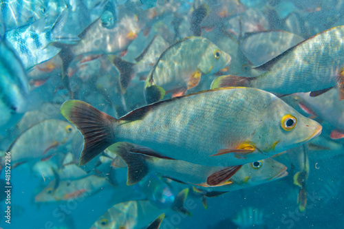 © bru greg, Naklejka premium banc de poisson dans le lagon de rangiroa, tuamotu, polynésie francaise