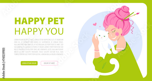 Obraz premium baner happy pet, website about animals, about love for pets, website...