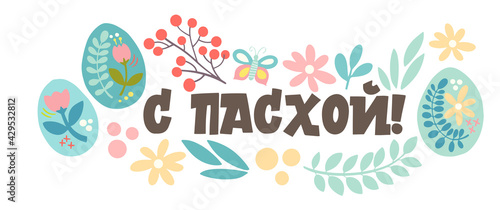 Fototapeta premium Baner with Easter in Russian. Calligraphy and lettering in Russian are in trend. Elements for design