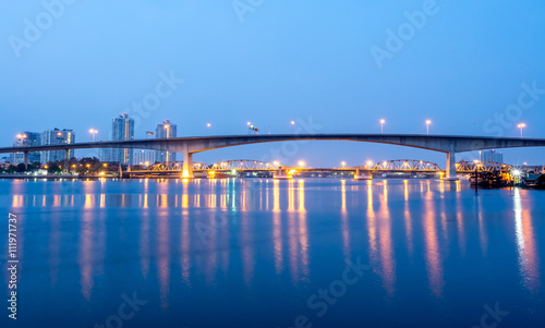 © jeafish, Fototapeta premium Bangkok bridge under morning twilight sky