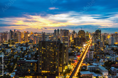© note_yn, Obraz premium Bangkok city aerial view at twilight