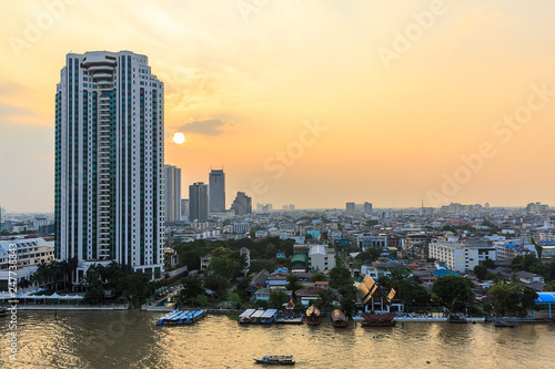 Obraz premium Bangkok City - Beautiful sunset view of Bhumibol Bridge,Thailand