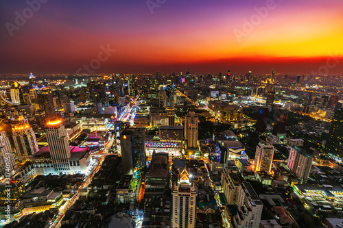 Fototapeta premium Bangkok city downtown and road traffic at sunset in Thailand