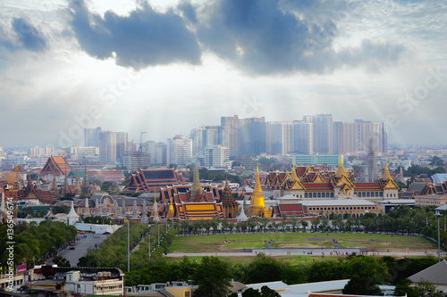 © Patrick Foto, Obraz premium Bangkok city pillars shrine and Wat Phra Kaew