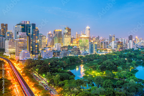 Fototapeta premium Bangkok city skyline with Lumpini park from top view in Thailand