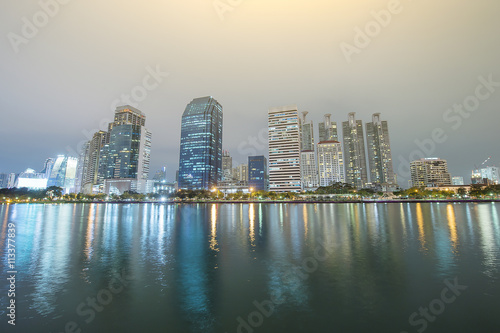 Fototapeta premium bangkok City view in public park with water reflection during twilight