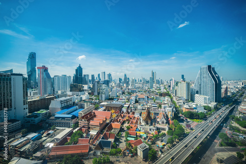 © Sumeth, Fototapeta premium Bangkok Cityscape view with beautiful scenery blue sky and cloud in the day time.Bangkok is the capital and most populous city of Thailand.