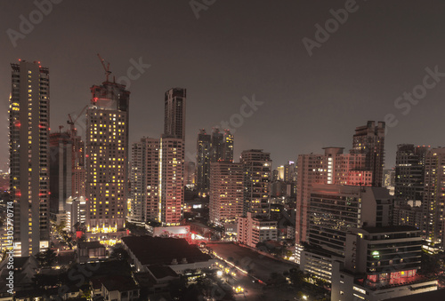 © banlai, Fototapeta premium Bangkok night view with skyscraper in business district in Bangkok Thailand