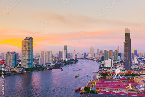 Fototapeta premium Bangkok skyline at night with beautiful view.