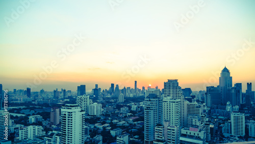 Fototapeta premium Bangkok skyline bei Sonnenuntergang Panorama