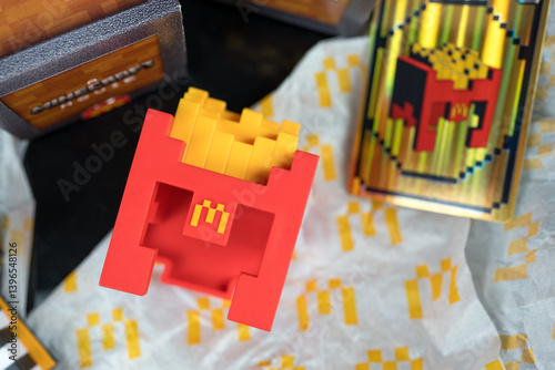 Fototapeta premium Bangkok, Thailand - April 10, 2025 : Fry Helmet Minecraft from McDonald, Toy...