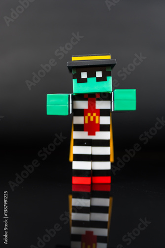 © Dontree, Naklejka premium Bangkok, Thailand - April 6, 2025 : Toy of Zombie hamburglar form McDonald. Blind box toy from McDonald's collaboration with Minecraft movie.