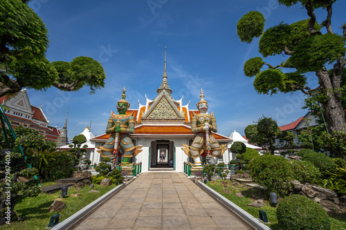 © somchairakin, Fototapeta premium Bangkok, Thailand at Wat Arun Temple, Giant Statue guarding the entrance to the temple, Bangkok, Thailand. on the Thonburi west bank of the Chao Phraya River.