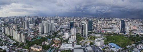 Obraz premium BANGKOK THAILAND - JUNE7,2017 : aerial view of bangkok skyscraper and newly modern business center at ratchadaphisek districk east of thailand capital township