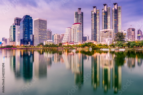 © Designpics, Fototapeta premium Bangkok, Thailand skyline from Benjakiti Park.