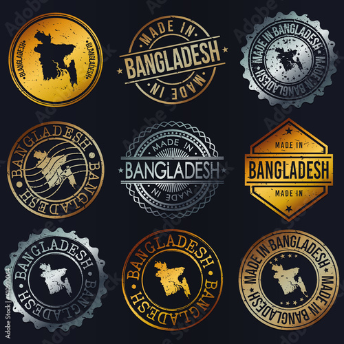 Naklejka premium Bangladesh Business Metal Stamps. Gold Made In Product Seal. National Logo...