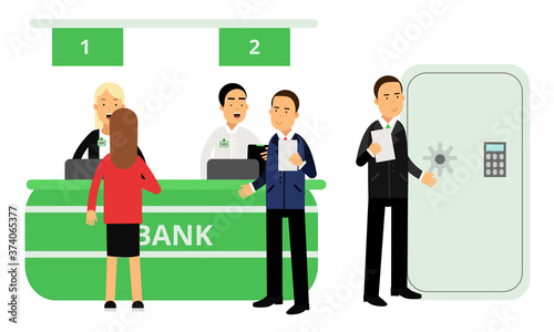 © Happypictures, Obraz premium Bank Customers and Staff Serving Clients Vector Illustration Set