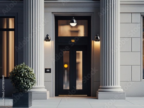 Fototapeta premium Bank exterior with sleek closedcircuit cameras monitoring the main entrance,...
