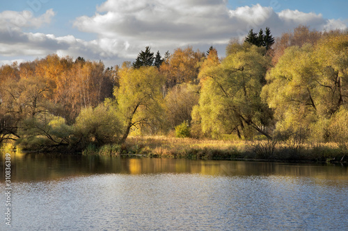 © Andrey Shevchenko, Fototapeta premium Bank of Desna river near Troitsk town - Troitsky administrative okrug of federal city of Moscow. Russia