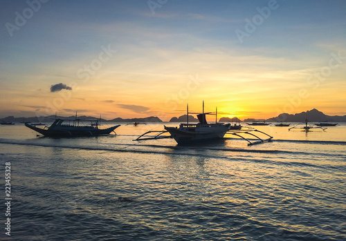 © disrupt, Fototapeta premium Banka Boats with beautiful sunset at el Nido