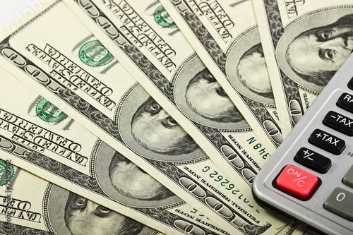 © mars58, Fototapeta premium Banknote hundred dollars and calculator