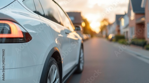 © ktianngoen0128, Fototapeta premium Banner ad showcasing new lower prices for electric vehicles with ample copy space, emphasizing affordability and depth of field.