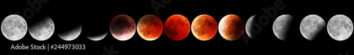 © bennymarty, Fototapeta premium Banner astronomical background. Full red moon phases by night. The total phases of the lunar eclipse. Wide panorama.