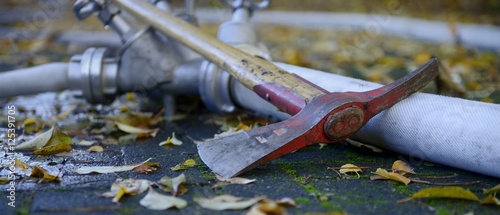 © Gerhard Seybert, Fototapeta premium Banner Feuerwehr Einsatz mit Feuerwehraxt und Verteiler