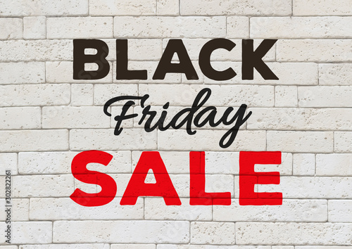 © Krasy, Fototapeta premium Banner for Black Friday, text on bricks wall