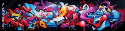 Fototapeta premium Banner image featuring a large dynamic graffiti artwork with bright, vibrant...