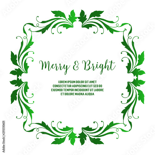 Fototapeta premium Banner merry and bright, with decoration border of green foliage frame. Vector