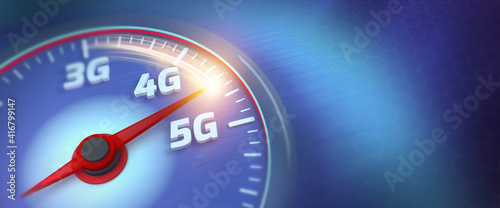 © CravenA, Fototapeta premium Banner of 5G high speed internet concept. Wireless network speed. Wireless network speed evolution 5G concept