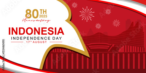 Fototapeta premium Banner or poster design for the 80th Indonesian Independence Day in 2025 with...