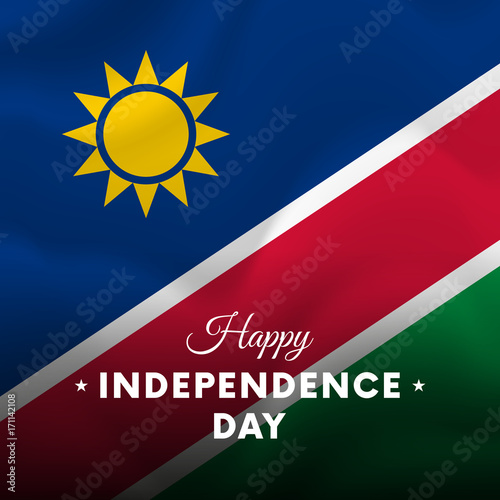 Fototapeta premium Banner or poster of Namibia independence day celebration. Waving flag. Vector...