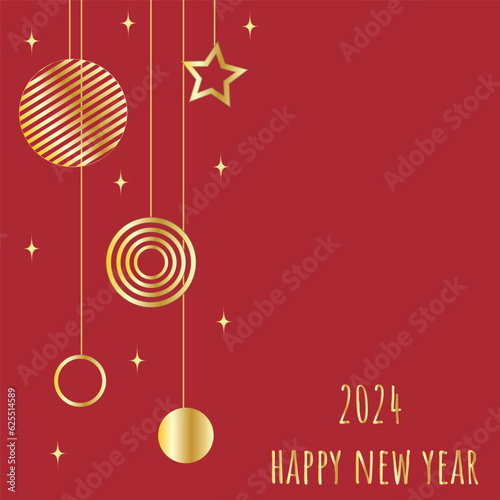 © Елена Смыкова, Naklejka premium Banner, postcard, poster with the inscription 2024 and golden balls on a red background