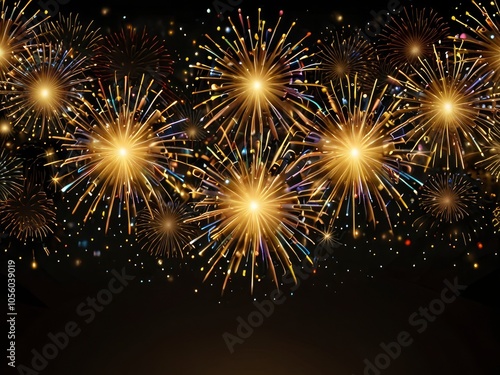 © AHMAD TAUFK, Naklejka premium Banner Purple Firework celebrate anniversary happy new year 2024, 4th of july holiday festival. Banner Purple firework night time National holiday. Violet firework New year 2025 festival copy space