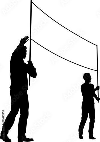 Obraz premium Banner Silhouette Protestors at March Rally Strike