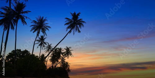 © SASITHORN, Obraz premium Banner Summer with colorful theme as palm trees background as texture frame background