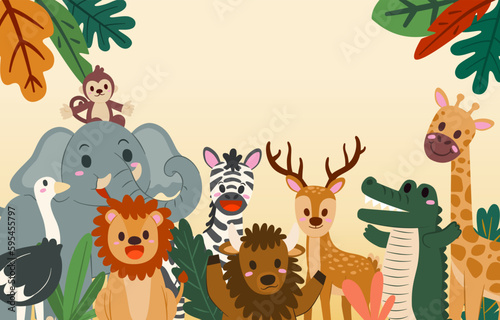 Naklejka premium Banner the Jungle Animals in the forest