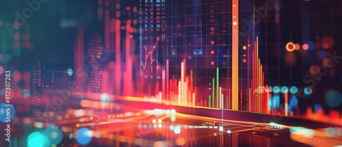 Fototapeta premium Banner with copy space of business intelligence, visualized in cinematic...