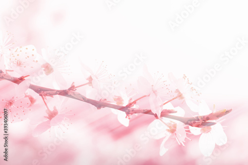 © SerPhoto, Fototapeta premium Banner with copy space spring background blossoming branches of apricots